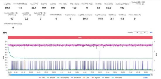 半小时烽火地带平均 164.4 帧,功耗 4.3W。